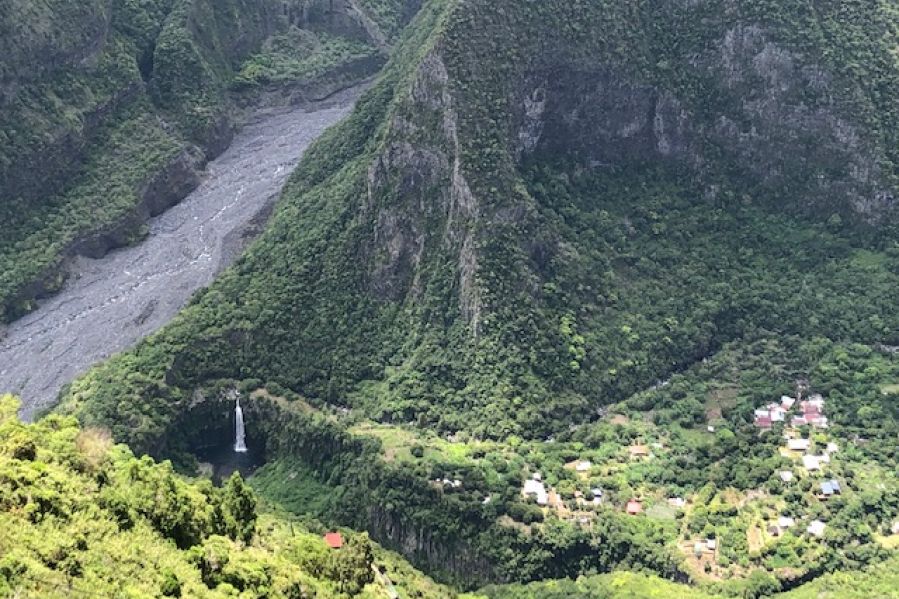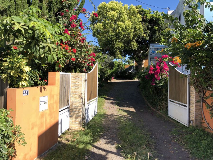 Depuis Saint-pierre, prendre la nationale N°3 au giratoire de la tour des Azalées prendre la première à droite, continuer tout droit jusqu'au petit rond point c'est toujours tout droit à 500 m sur votre gauche portail double battants.